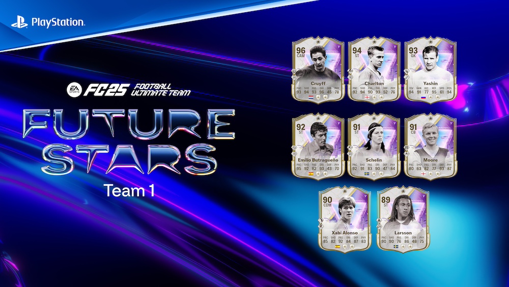 În prima dintre cele două echipe Future Stars se regăsesc jucători talentați precum Endrick (Real Madrid), Benjamin Šeško (RB Leipzig), Kessya Bussy (Paris FC), Lamine Yamal (FC Barcelona), împreună cu alți 13 tineri jucători selectați de EA SPORTS FC. Aleși pentru performanțele lor impresionante pe teren în prezent, EA SPORTS FC 25 le oferă recunoaștere ca următorii Future Stars, cu elemente unice în joc care proiectează ceea ce ar putea deveni dacă își ating potențialul maxim.